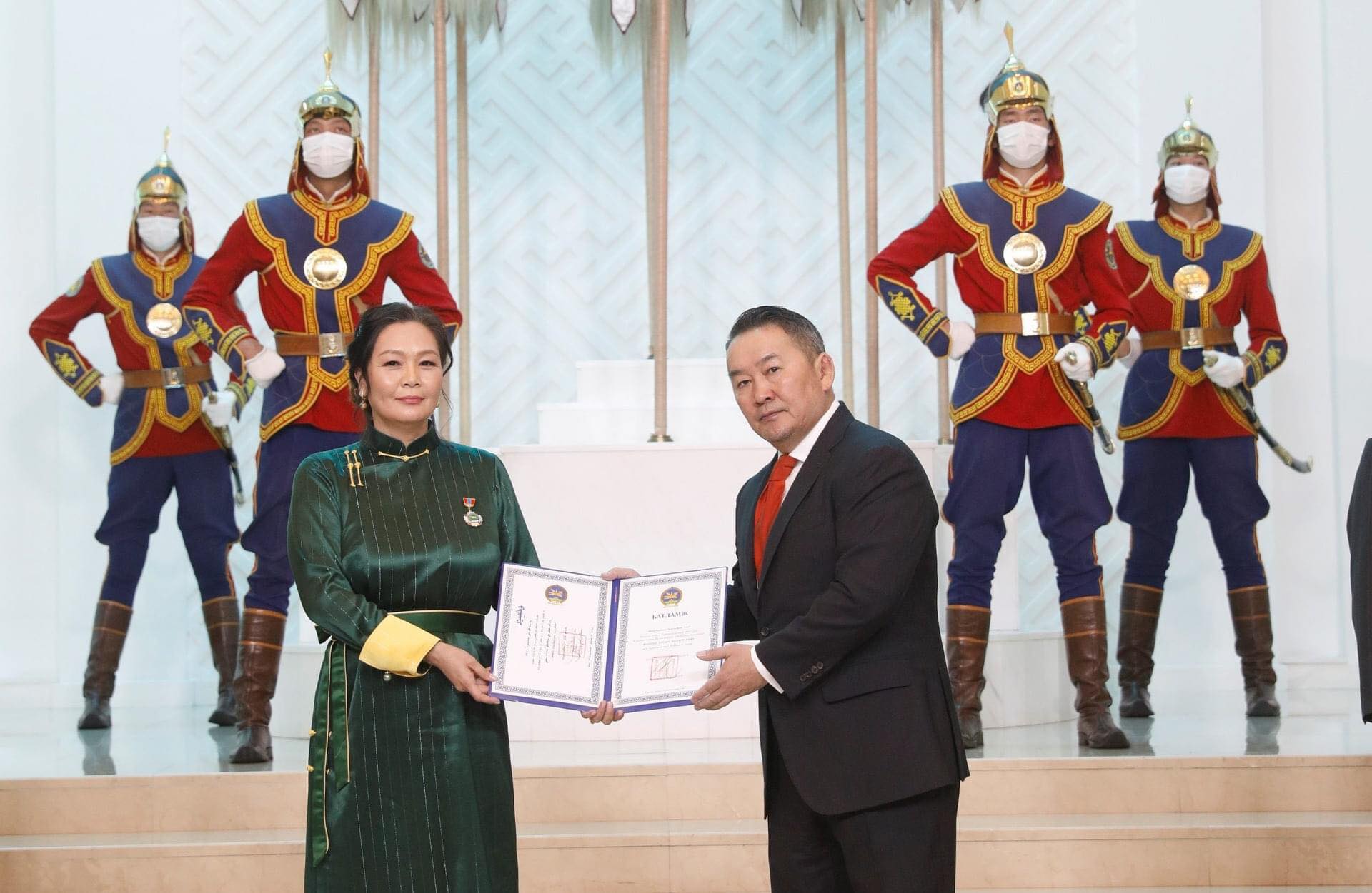 Төрийн ордны хаалгаар орохоос эхлээд л би их догдолсон. Тухайн өдөр уяачдаас гадна эхчүүд “Эхийн алдар” одонгоо хүртсэн. Намайг Төрийн ордны хашааны гадна очиход маш олон эх орох гээд дугаарлан зогсож байлаа. Би “Алдарт эх”. Тэр олон эхчүүдийг “Алдарт эх” болж буйд, улсын алдарт уяач цол хүртэхээр яваа өөрийнхөө өмнөөс баярлаж байлаа.