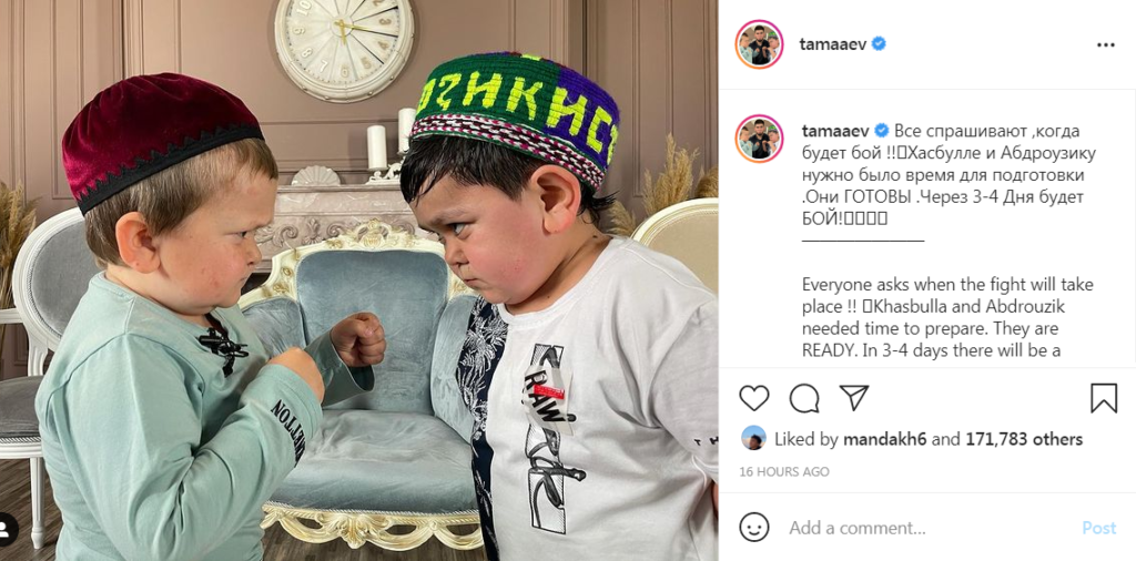 Хасбулла Магомедов нь Дагестан гаралтай блоггер, ховор төрлийн генетикийн өвчинтэй нэгэн. 18 настай Магомедов нь Дагестанд хүмүүсийн сайн мэдэх од. Тэрбээр алдарт тулаанч Хабиб Нурмагомедов зэрэг UFC-ийн тамирчидтай авахуулсан зургаа инстаграм хуудсандаа нийтэлдэг. Түүний өрсөлдөгчөөр Тажикстан гаралтай Абдурозика билээ. 17 настай Абдурозика улсдаа хөгжмийн авьяасаараа алдартай аж.