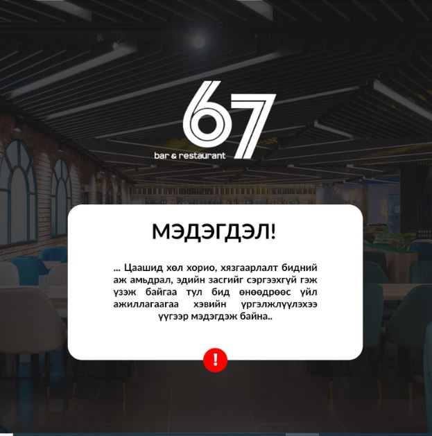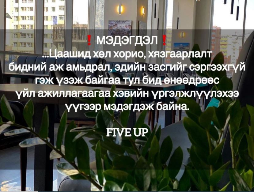 Тиймээс төр засгийн хариуцлагагүй үйлдлийн хариуцлагыг бид үүрмээргүй байна. Үр дүнгүй хорио, хязгаарлалтууд бидний аж амьдрал, эдийн засгийг сэргээхгүй гэж үзэж байна. Тиймээс өнөөдрөөс үйл ажиллагаагаа хэвийн үргэлжлүүлж заалаар үйлчилж эхэлнэ гэдгээ УОК-т үүгээр мэдэгдэж байна.” гэлээ.