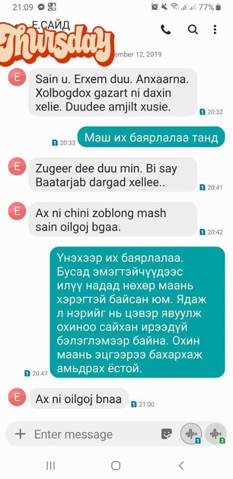 Мөн МХЕГ-аар дахин бүрэлдэхүүнтэй шинжээч томилуулан дүгнэлт гаргахад иргэн Б.Болороогийн нөхөр Б нь буруугүй түүний ажиллаж байсан компанийн буруу гэж гарсан талаар тэрбээр өөрийн цахим хуудаснаа бичсэн байна.