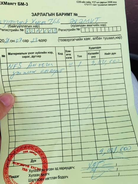 “Та нартаа дуулгах сайхан мэдээтэй. Та бүхний сэтгэлийн дэмээр бүтсэн Амьсгал дэмжих аппарат маань ЭХЭМҮТ ийн Эрчимт эмчилгээний тасагт хандивлагдлаа.
