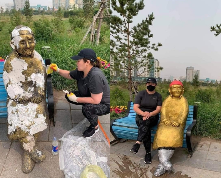 Хүмүүс эмээгийн өвөр дээр чихэр тавин, хүүхдүүд эрхийг нь сонирхон үздэг юм. Мөн зарим нь ‘Эмээтэйгээ уулзсан юм шиг санагдлаа. Эмээ минь ингээд л эрх бариад сууж байдагсан’ хэмээн ярьцгаадаг билээ. Тэгвэл хэдхэн хоногийн өмнө нэгэн сайхан сэтгэлтэй бүсгүй эмээгийн хөшөөг дахин будаж өнгийг нь сайн дураараа сэргээсэн байна. Бидний дунд ийм л эгэл даруу сайхан сэтгэлтэй хүн байгаад Монгол түмэн хайрлаж хүндэлж, түүнд талархсан сэтгэгдлийг цахим орчноор илэрхийлж байсан юм.