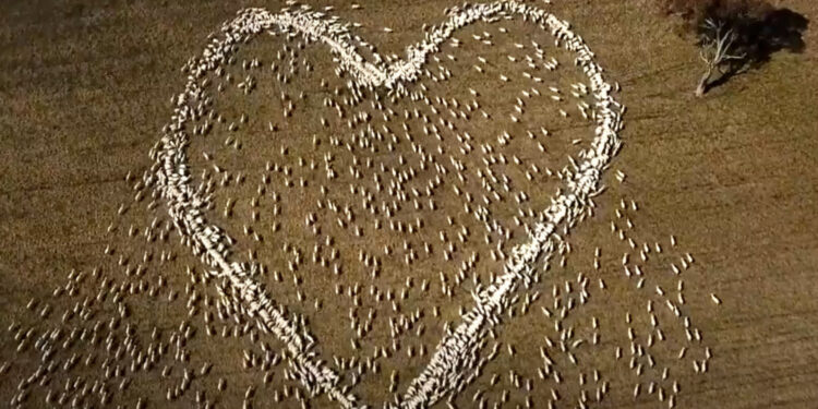 Фермерийн аж ахуй эрхлэгч Бен Жексон к.о.в.и.дын улмаас х.ө.л хорионд байгаа учир хайртай авга эгчийнхээ ор.шуу.лгын ёс.лолд оролцох боломжгүй болсон байна. Тэрээр “Хэлбэрийг нь зөв байрлуулахад багагүй цаг орсон ч эцэст нь та бүгдийн харж байгаачлан би хонин сүргээрээ зүрх хийж чадсан. Үүгээрээ би түүнд ямар их хайртай гэдгээ илэрхийлэхийг хүссэн юм” хэмээжээ. Тэрээр буудайгаа зүрхэн хэлбэрт оруулан газарт асгаж хонинуудыг хооллосон ба дроноор хийсэн бичлэгийг нь Брисбэн хотод бол.сон ор.шyyл.гын ёслолд оролцож буй хүмүүст үзүүлсэн байна.