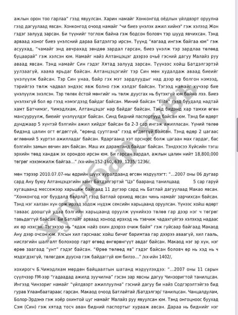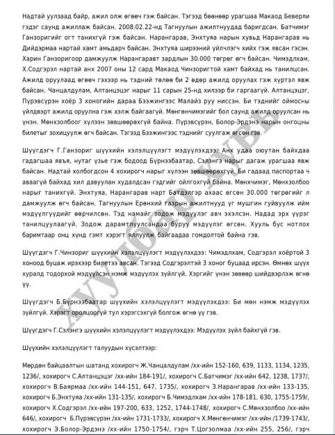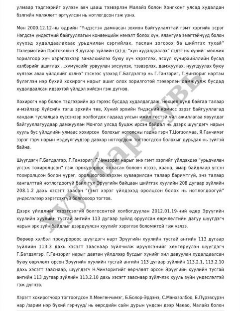 -2007 оны 11-р сард иргэн Ч, А нарыг “Хонгконк улсад ажилд зуучилж өгнө” хэмээн хууран мэхэлж, хил давуулаад тус улсад би еийг нь ү нэлүүлэх зорилгоор бусдад худалдсан