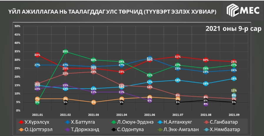 Түүнчлэн Ерөнхий сайд Л.Оюун-Эрдэнийн рейтинг өссөн бөгөөд вакцинжуулалтын ажил болон авлигатай тэмцэх ажил нь ийн рейтинг нь өсөхөд нөлөөлсөн байна.