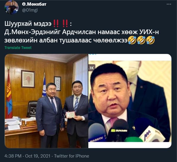 Гэтэл зарим эх сурвалжийн мэдээлж байгаагаар намын дотоод журмыг зөрчдөг МАН-ын удирдлагуудтай тохироо хийсэн гэх бор шувуу нисэж АН-ын намын бүлгийн зөвлөхөөс чөлөөлсөн гэх сураг гарав. Хэд хоног лайв хийснийх ямартайч бүлэгт зөвлөх нэрээр ордонруу чөлөөтэй нэвтрэх эрхтэй болоод байсан. Гэвч ордон ороод лайв хийж орилоод амар заяа үзүүлэхгүй байхвий гэх болгоомжлол төрсөн үү гэлтэй ямартайч албан тушаалд дөнгөж томилогдоод ордноос гарж амжаагүй байтал буцаагаад байранд нь тавьсан сурагтай.