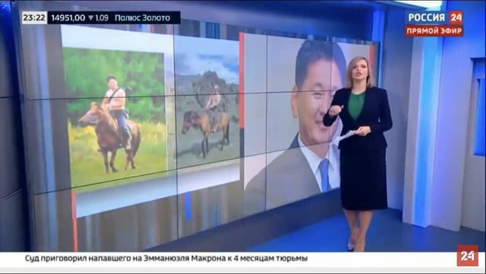 Ингэхдээ тус телевиз Ерөнхийлөгч У.Хүрэлсүхийг ОХУ-ын Ерөнхийлөгч Владимир Путины зургуудтай төстэй зураг авхуулж байсан талаар онцлон ярьсан байна. Тухайлбал, усанд шумбаж буй зураг, сурагчдад хичээл зааж буй мөч, зургийн өгүүлэмж зэрэг нь Владимир Путиныхтэй давтагдаж буйг онцолжээ. Үүнийг улс төрийн “косплей” хэмээн нэрлэсэн байна.