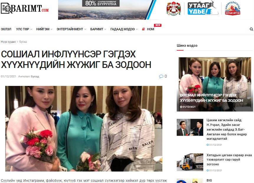 Сүүлийн үед Инстаграмм, фэйсбүүк, юүтүүб гэх мэт сошиал сүлжээгээр хиймэл дүр төрх үүсгэж тэрүүгээрээ борлуулалт хийж эсвэл өөрийгөө хэт дөвийлгөж амьдардаг хүмүүс маш их болсон. Тэр инфлүүнсэр гэгдэх хүмүүсийн ард байгаа хуур амч амьд рал, хуурамч дүр төрхөд итгэсэн өсвөр насныхныг хараад харам сал төрж байна. Жишээ нь саяхан HOUSE of LOVE (Le beautique Lifestyle) нэртэй бичлэг юутүүб хуудаснаа тавигдаж. Инстаграммын хамаг олон дагагчтай хүүхнүүд очжээ. Тэнд байгаа хүүхнүүд бүгд л өөрсдийн ёс зүй, эд хөрөнгөөрөө гайхалцаж байгааг харж болно.