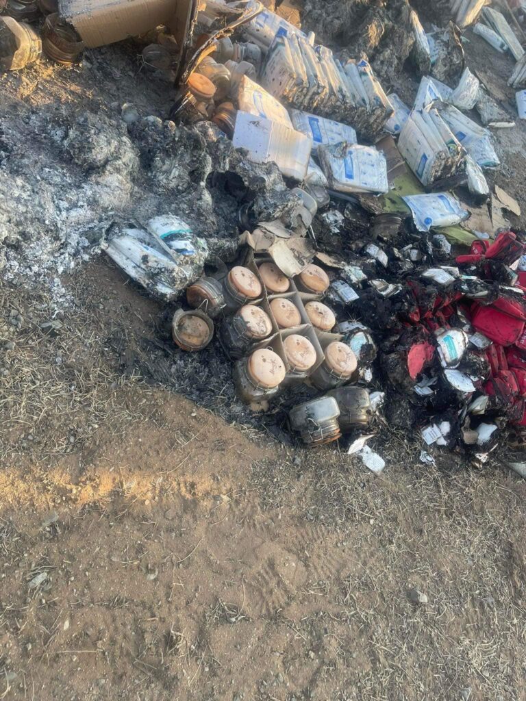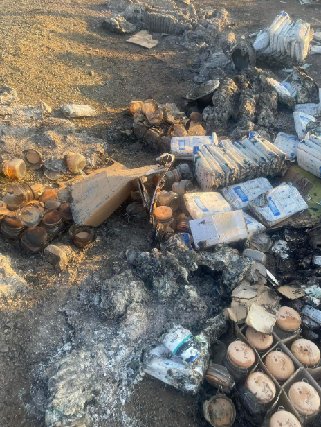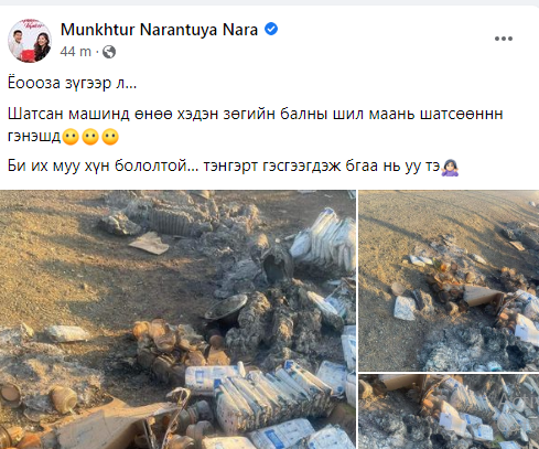 Тэгвэл тэдгээр ачаан дунд  НАРА-гын зөгийн балны шилнүүд шатсан байна.
