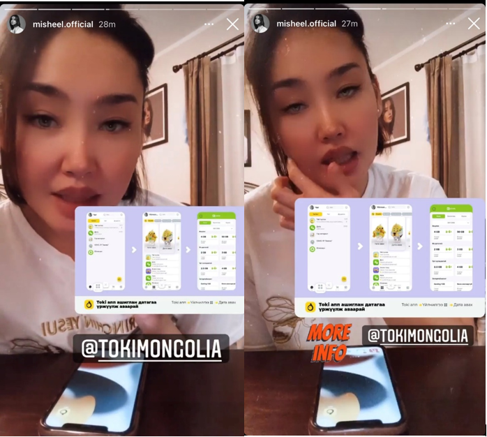 Тэгвэл түүний хувийн туслах гээд байгаа нөхрийг Toki апп гэдэг юм байна. Хүмүүсийн өдөр тутмын амьдралыг хөнгөвчлөх зорилготой, “Танд тусална” уриатай түүнийг хүн болгон л хувийн туслахаа болгож болох аж. Жүжигчин Мишээлийн хувьд Toki апп-ийг ашиглаж нэгж, датагаа 2 дахин үржүүлж авдаг тухайгаа, мөн түүнийг маш ашигтай хэрэгтэй, хоол цайгаа хүртэл захиалаад авчихаж болно гэдэг талаас нь л хэлсэн юм билээ шүү.