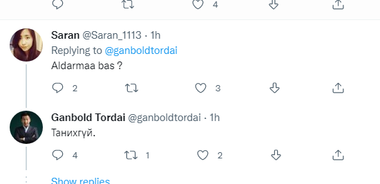 Мөн нэгэн хэрэглэгч түүнээс “Алдармаа бас?” гэсний доор Т.Ганболд “Танихгүй” хэмээн хариулжээ.