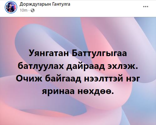 “Уянгатан Баттулгыгаа батлуулах дайраад эхлэж. Очиж байгаад нээлттэй нэг яринаа нөхдөө.”