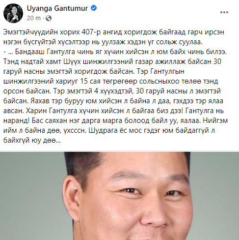 Улс төрч Г.Уянга түүний хийсэн мэдээлэл шуугиан тарьж байна. Тодруулбал: “Бандaaш Гантулгын шинжилгээний хариуг сольсон эмэгтэй нарсанд байгаа тухай цаашлаад тэр xv чuн хийсэн нь үнэн” гэх…