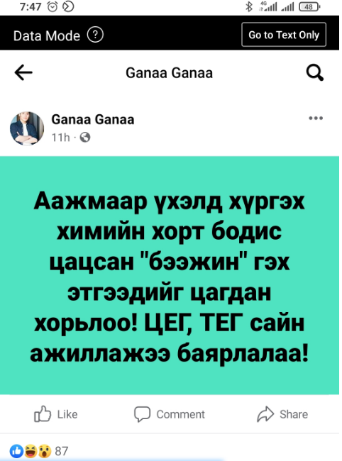 Тэрээр “Аажмаар үхэлд хүргэх хи.мийн х.ор.т бодис цацсан “бээжин” гэх этгээдийг цагдан хорьлоо! ЦЕГ, ТЕГ сайн ажиллажээ баярлалаа!” хэмээжээ. Дээрх мэдээлэл үнэн худал болохыг эргэн мэдээллэх болно.