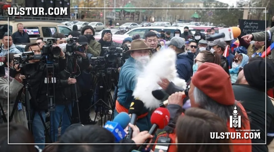 Нийслэлийн Ардчилсан намаас Орос-Украины нөхцөл байдалтай холбогдуулан Хэлмэгдэгсдийн хөшөөний өмнө цуглаан зохион байгуулсан. Цуглаан зохион байгуулагчид цагдаагийн удирдлагуудыг огцрохыг шаардсан юм. Цуглаанд оролцогч Д.Сосорбарам үзэл бодлоо илэрхийлэх үеэр монгол дээлтэй залуус түүн рүү гурил цацсан юм. Энэ үеэр цуглаанд ирсэн иргэд” Монгол дээлтэй жүжигчид зайл. Путины гар хөлүүд зайл” хэмээн хашхирч байлаа.