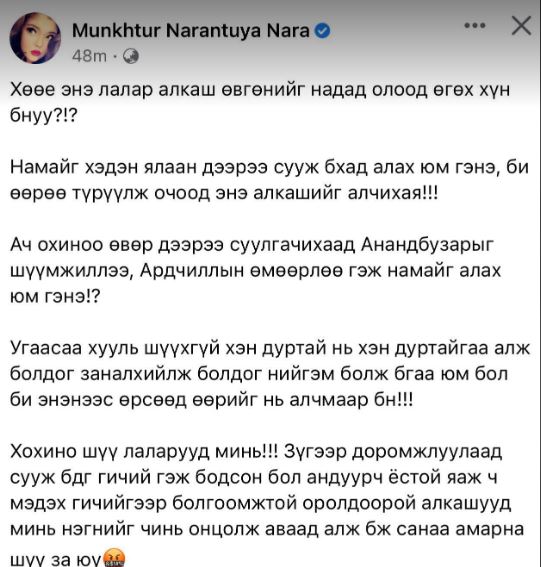 Сүүлийн үед түүний сошиал хаяг хараалаар дүүрэх болов.