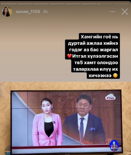 “Анхны эфиртээ өнөөдөр гарлаа. Яахав. Алдаа оноо их байна. Хичээж явахад яван сайжрах байх. Хэрэгтэй мэдээ мэдээлэл олж сурвалжилж байнаа.
