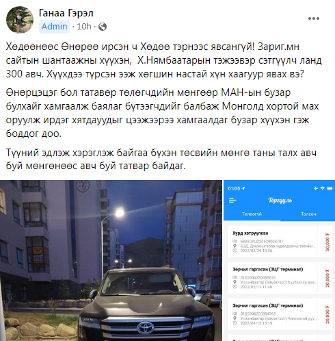 Харин түүнийг ЛАНД 300 автомашинаа явган хүний зам дээр даам байрлуулсан хэмээх пост газар аваад байна.