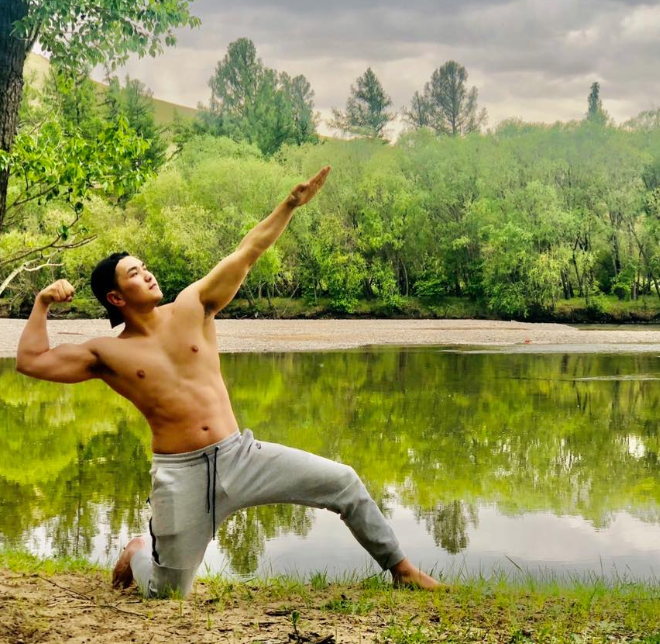 Мөн түүний 100 жилийн ойн баяр наадамд зориулан гаргасан “Монгол бөх” дууны клипэндээ мөн цээж нүцгэн сур элдэж байгаагаар дуулжээ.