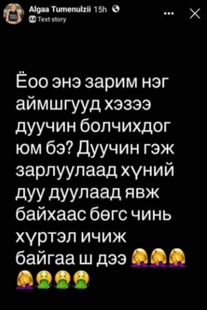 Дуучин гэж зарлуулаад хүний дуу дуулаад явж байхаас бө гc чинь хүртэл ичиж байгаа шдээ” гэжээ.