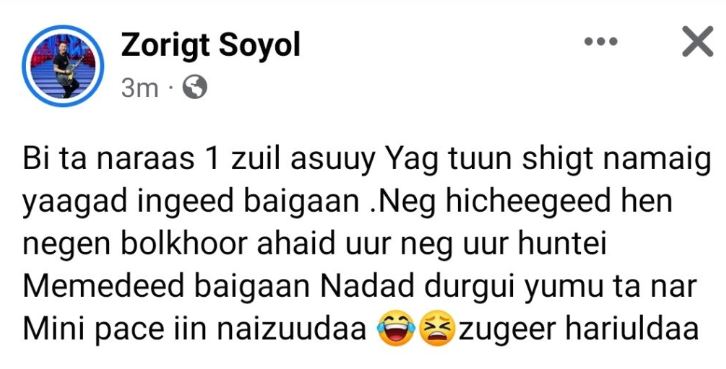 Түүний оролцсон дугаар болгон инээд бэлэглэж мөн ямар нэгэн хошин зураг болдог. Үүнд гомдсон уу уурласан уу тэрбээр ийн бичжээ.