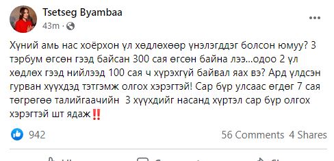 “Хүний амь нас хоёрхон үл хөдлөхөөр үнэлэгддэг болсон юмуу? 3 тэрбум өгсөн гээд байсан 300 сая өгсөн байна лээ…одоо 2 үл хөдлөх гээд нийлээд 100 сая ч хүрэхгүй байвал яах вэ?