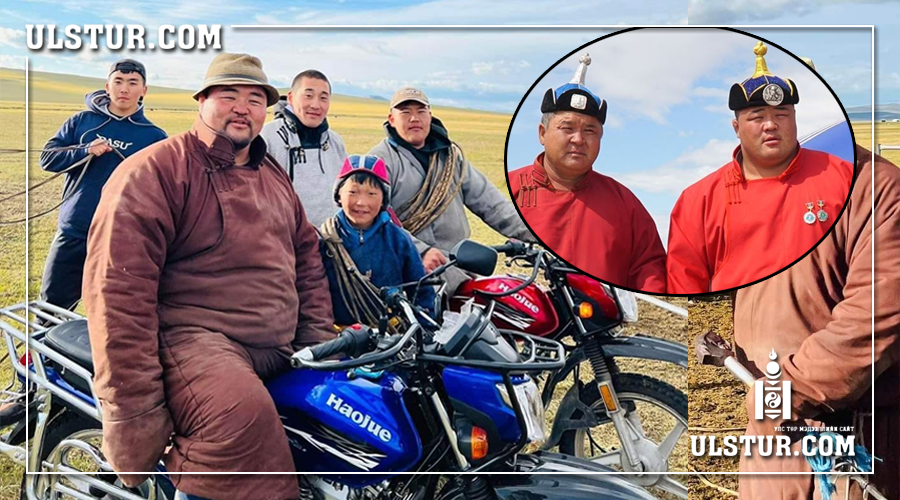 Улсын арслан Э.Оюунболд аавынхаа үйл хэргийг үргэлжлүүлэн нутагтаа очиж адуу малаа эргэж тойрч ээждээ дэм болон даруухан аж төрж байгаа ажээ. Түүний аав Хэнтий аймгийн Өмнөдэлгэр сумын харьяат Д.Энхтөгс гуай өнгөрөгч 5 сард бурханы оронд одсон билээ. Залуу арслангийн аав аймгийн начин цолтой, Өмнөдэлгэр сумынхаа наадамд 1991, 1992, 1996, 2010 онд түрүүлж, 2001, 2006 онд үзүүрлэсэн эгнэшгүй хүчтэн байжээ.