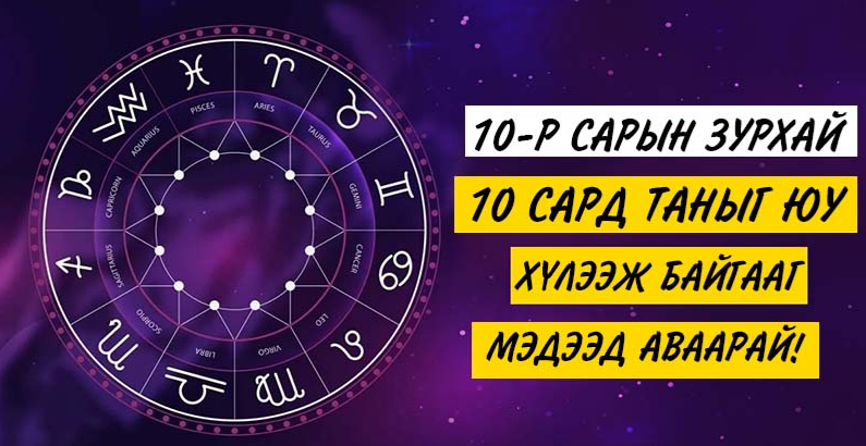 Арслан: Романтик хүсэл, тэмүүлэл нэмэгдэх сар. Адал явдал туршилтыг өдөөх нөхцөл байдлууд чамайг тойрох болно. Мэдрэмжийн огцом өөрчлөлтүүд чамайг санаанд оромгүй гэнэтийн шийдвэр гаргахад хүргэж магадгүй. Хэрэв чиний зан ааш холерик бол өөрийгөө удирдан залахыг хичээгээрэй. Зарим нэг эрсдэлтэй алхмыг хийснээсээ болоод чи нураая гэж бодоогүй харилцаагаа үгүй хийж мэднэ. Энэ тал дээр л анхааралтай хандчихвал ямар ч нөхцөлд өөрийгөө зугаацуулахад тааламжтай. Биеийн болон сэтгэлзүйн эрч хүч хангалттай байгаа тул хичнээн л бол хичнээн ачааллыг дааж чадна. Чиний энэ сард хийсэн оюуны бүтээл, илтгэл сайшаагдаж бүтээлч чанарыг чинь бусад хүн үнэлнэ. Өөрийгөө мэргэжлийн тал дээр өөрчлөхийг хүсэж магадгүй. Дараагийн 2-3 жилд чи үл хөдлөх хөрөнгөтэй холбоотой асуудлаас салахгүй. Санхүүгийн хувьд 10 дугаар сар тогтвортой, ажлын нэмэлт урамшуулал, бонус авах магадлалтай. Идэвхтэй болон өөдрөг хандлага давамгайлах тул үүнийгээ дагаад эрүүл мэндэд чинь ч бас сэтгэл чилээх зүйл гарахгүй.