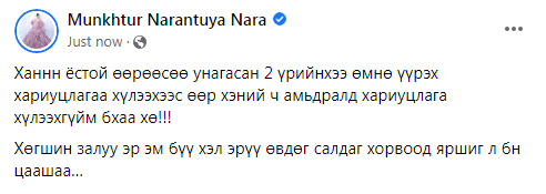 Тэрбээр: “Ханнн ёстой өөрөөсөө унагасан 2 үрийнхээ өмнө үүрэх хариуцлагаа хүлээхээс өөр хэний ч амьдралд хариуцлага хүлээхгүйм бхаа хө!!! Хөгшин залуу эр эм бүү хэл эрүү өвдөг салдаг хорвоод яршиг л бн цаашаа…”