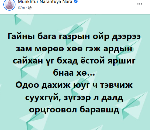 Гайны бага газрын ойр дээрээ зам мөрөө хөө гэж ардын сайхан үг бхад ёстой яршиг бнаа хө…