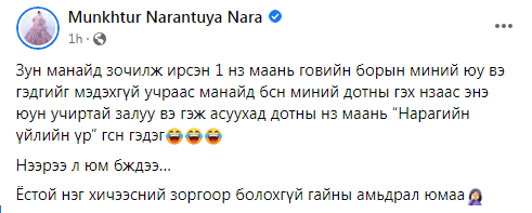 Зун манайд зочилж ирсэн 1 нз маань говийн борын миний юу вэ гэдгийг мэдэхгүй учраас манайд бсн миний дотны гэх нзаас энэ юун учиртай залуу вэ гэж асуухад дотны нз маань “Нарагийн үйлийн үр” гсн гэдэг… Нээрээ л юм бждээ…  Ёстой нэг хичээсний зоргоор болохгүй гайны амьдрал юмаа” гэв.