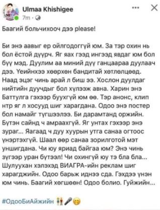 Үүнийг нь угийн хоржоонтой өөнтөгч постууд бичдэг сэтгүүлч Ч.Уламбаяр өлгөж аваад ийн бичсэн нь тэдний дургүйцлийг ихэд хүргэжээ. Тэр нь ч мэдээж шүүдээ.  Аав охин 2-ийн авхуулсан зургийг +21 утга харуулсан хэмээн шоолонгуй шүүмжилжээ. Гэхдээ л энэ бол арай хэтэрсэн шүүмжлэл гэлтэй. Тэд чинь төрсөн аав охин хоёр шүүдээ.