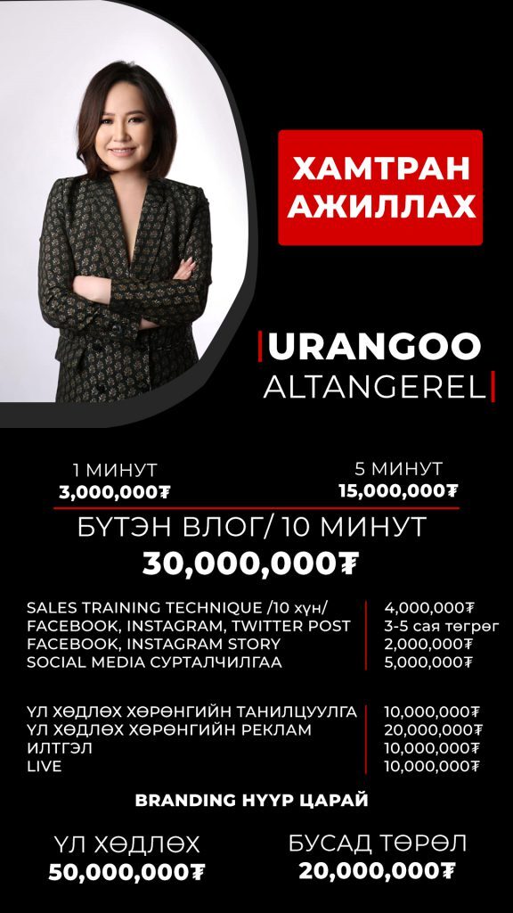 Захиалгаар 10 минутын влог хийж, өөрөө нүүр царай болох хамтран ажиллах саналаа 30 сая төгрөгөөр үнэлсэн А.Урангоо гэж хэн бэ.